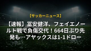 【速報】冨安健洋、フェイエノールト戦で負傷交代!664日ぶり先発も…アヤックスは1-1ドロー