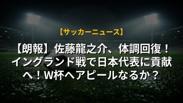 【朗報】佐藤龍之介、体調回復!イングランド戦で日本代表に貢献へ!W杯へアピールなるか?