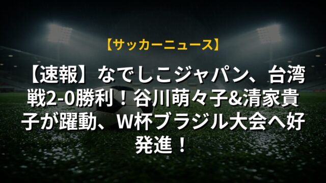 【速報】なでしこジャパン、台湾戦2-0勝利!谷川萌々子&清家貴子が躍動、W杯ブラジル大会へ好発進!