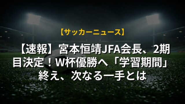【速報】宮本恒靖JFA会長、2期目決定!W杯優勝へ「学習期間」終え、次なる一手とは