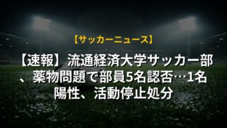 【速報】流通経済大学サッカー部、薬物問題で部員5名認否…1名陽性、活動停止処分