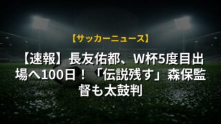 【速報】長友佑都、W杯5度目出場へ100日!「伝説残す」森保監督も太鼓判