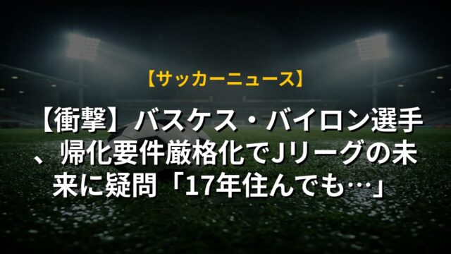 【衝撃】バスケス・バイロン選手、帰化要件厳格化でJリーグの未来に疑問「17年住んでも…」