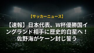 【速報】日本代表、W杯優勝国イングランド相手に歴史的白星へ!佐野海がケーン封じ誓う