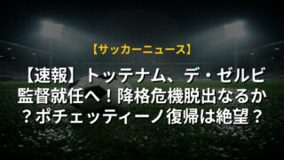 【速報】トッテナム、デ・ゼルビ監督就任へ!降格危機脱出なるか?ポチェッティーノ復帰は絶望?
