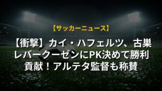 【衝撃】カイ・ハフェルツ、古巣レバークーゼンにPK決めて勝利貢献!アルテタ監督も称賛