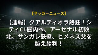 【速報】グアルディオラ熱狂!シティCL圏内へ、アーセナル初敗北、サンガレ鉄壁、ヒメネス父を越え勝利!
