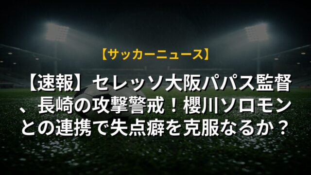 【速報】セレッソ大阪パパス監督、長崎の攻撃警戒!櫻川ソロモンとの連携で失点癖を克服なるか?
