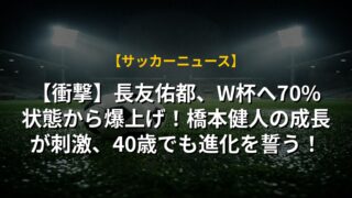 【衝撃】長友佑都、W杯へ70%状態から爆上げ!橋本健人の成長が刺激、40歳でも進化を誓う!