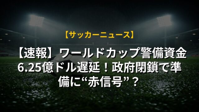 【速報】ワールドカップ警備資金6.25億ドル遅延!政府閉鎖で準備に“赤信号”?