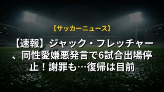 【速報】ジャック・フレッチャー、同性愛嫌悪発言で6試合出場停止!謝罪も…復帰は目前