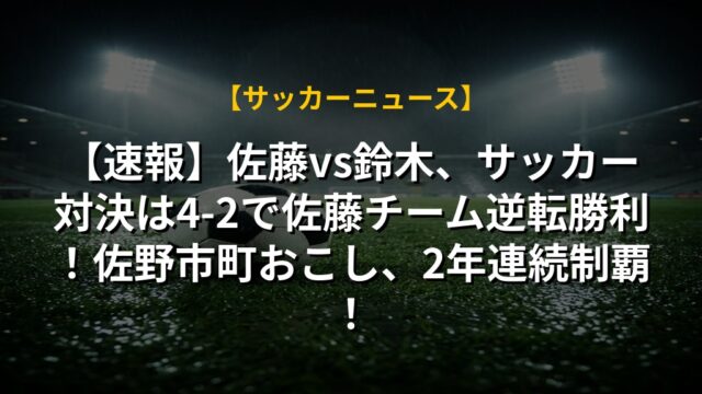 【速報】佐藤vs鈴木、サッカー対決は4-2で佐藤チーム逆転勝利!佐野市町おこし、2年連続制覇!