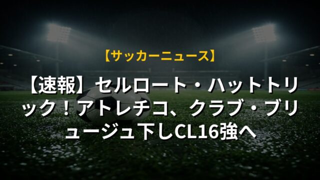 【速報】セルロート・ハットトリック!アトレチコ、クラブ・ブリュージュ下しCL16強へ