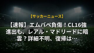【速報】エムバペ負傷!CL16強進出も、レアル・マドリードに暗雲?詳細不明、復帰は…