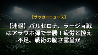 【速報】バルセロナ、ラージョ戦はアラウホ弾で辛勝!疲労と控え不足、戦術の脆さ露呈か