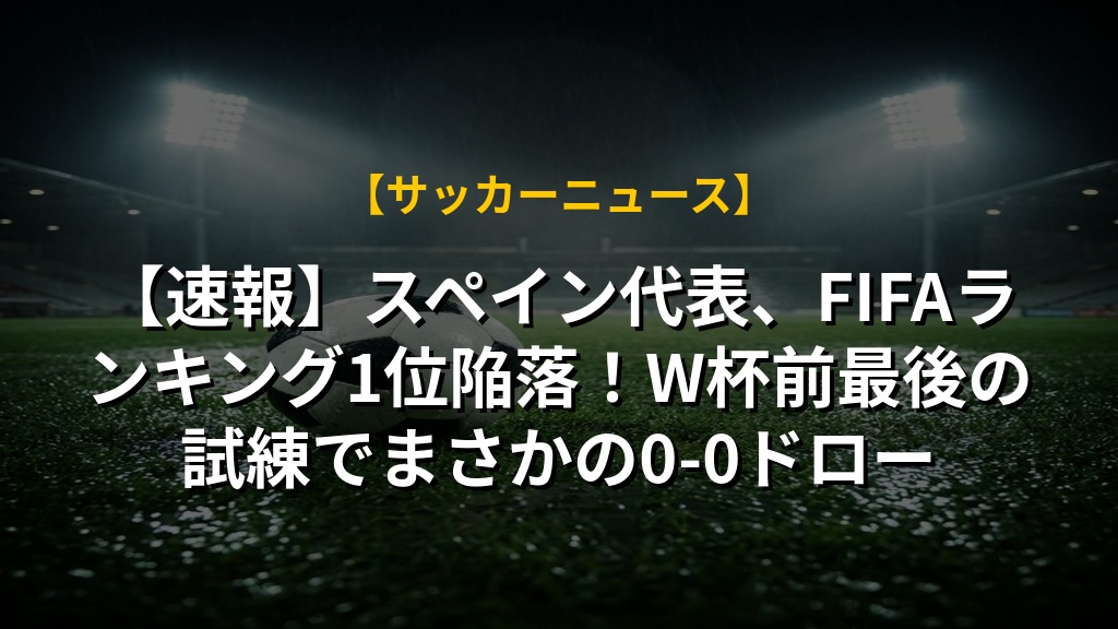 【速報】スペイン代表、FIFAランキング1位陥落!W杯前最後の試練でまさかの0-0ドロースペイン代表のニュース概要 スペイン代表は、ワールドカップ出場メンバー発表前の最後のテストマッチでエジプト代表と0-0で引き分けました。...