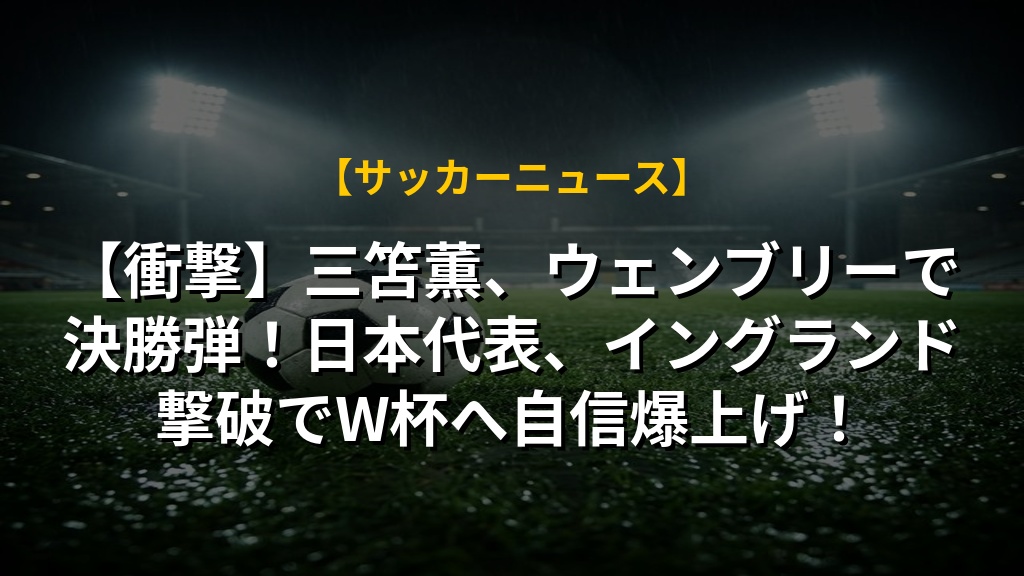 日本代表がイングランド代表との親善試合を1-0で制し、大きな自信を得ました。三笘薫選手がウェンブリーで決勝点を決め、その活躍はまさに圧巻です。シャドーでの起用も成功し、新たな可能性を見せました。