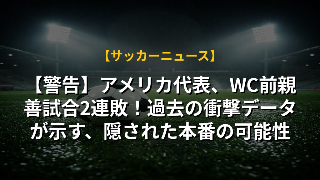【警告】アメリカ代表、WC前親善試合2連敗!過去の衝撃データが示す、隠された本番の可能性