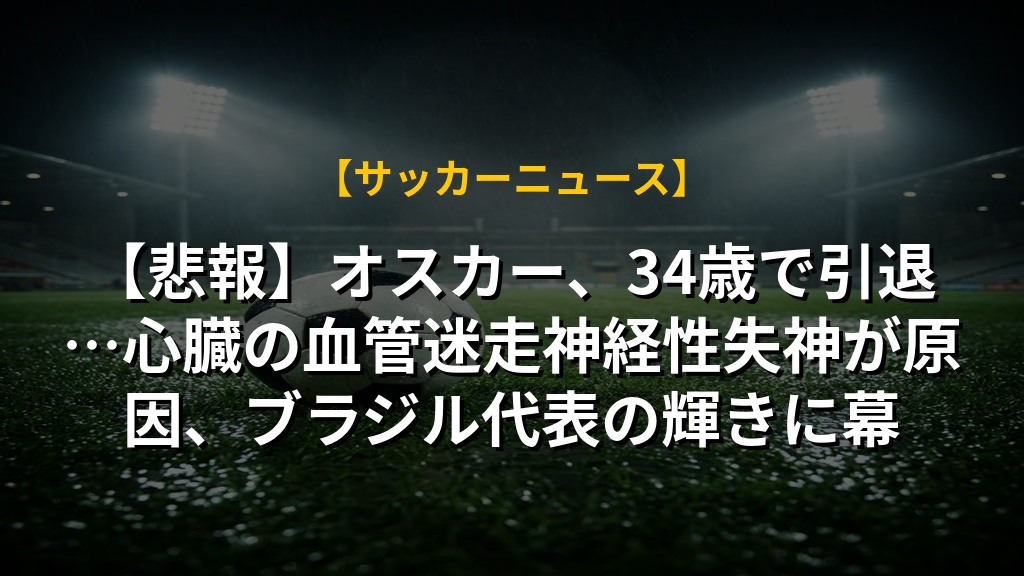 【悲報】オスカー、34歳で引退…心臓の血管迷走神経性失神が原因、ブラジル代表の輝きに幕