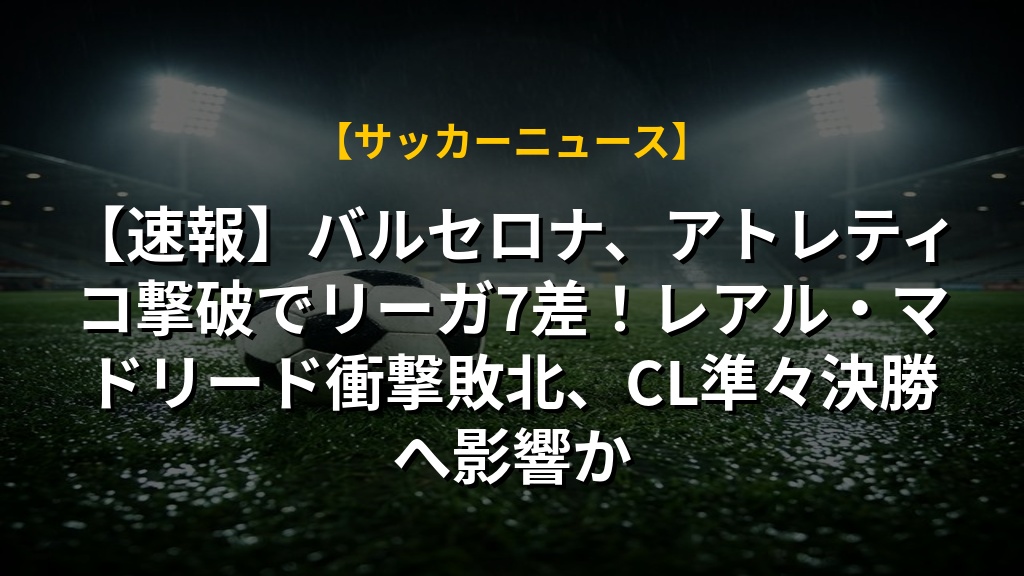 バルセロナがアトレティコ・マドリードとの激戦を制し、ラ・リーガ首位を7ポイント差に広げました。一方、レアル・マドリードはまさかの敗北で、その差を広げられてしまいました。バイエルンも劇的な逆転勝利で首位をキープしています。各リーグで勢力図が変わりつつある中で、バルセロナの勢いが止まらないのが印象的です。今後のチャンピオンズリーグでのアトレティコとの対戦にも注目が集まります。レアル・マドリードの立て直しにも期待したいですね。