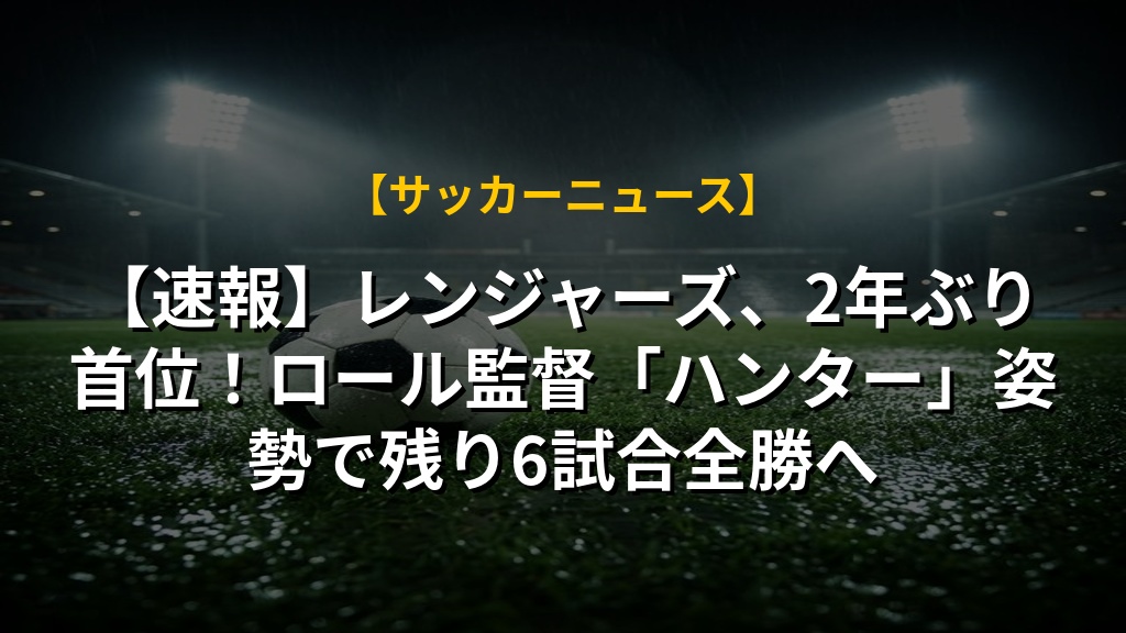レンジャーズが2年ぶりにリーグ首位に躍り出ていますね!ダニー・ロール監督の就任後、目覚ましいチームの変化でハーツとの差を縮め、見事首位を奪還しました。残り6試合を「ハンター」として戦うという監督の言葉に、力強い決意が感じられます。