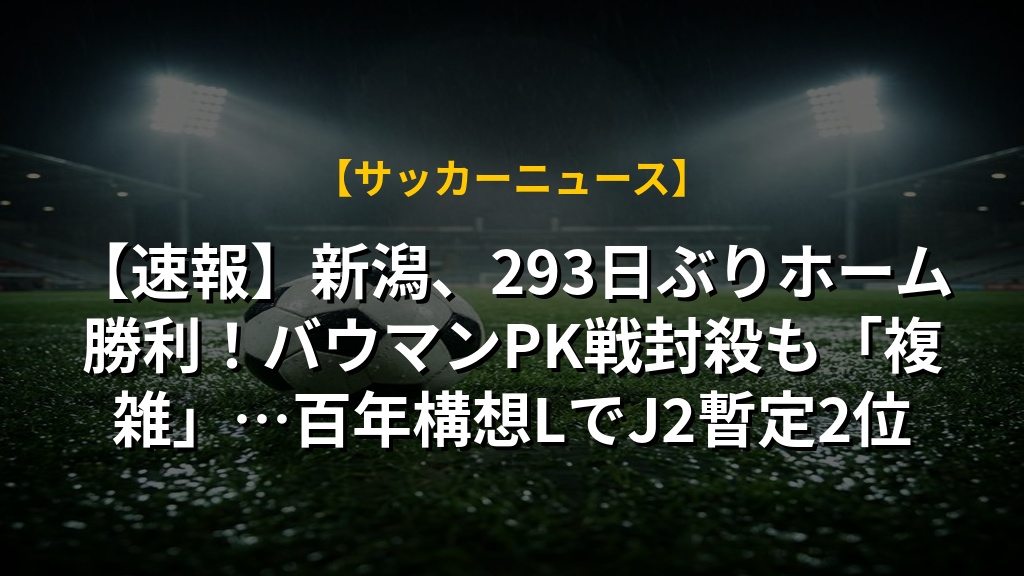 新潟がホームで293日ぶりの勝利を飾り、百年構想リーグで暫定2位に浮上しました。PK戦を制するも、バウマン選手の複雑な心境が印象的で、現代サッカーにおける守備の重要性と課題が浮き彫りになりました。船越監督はチームのベース作りは完了したと分析し、今後は攻撃陣の強化が急務です。無失点6勝という堅守を維持しつつ、得点力不足を解消できるかどうかが、今後のJ1昇格への鍵を握るでしょう。次節以降の試合から目が離せません。