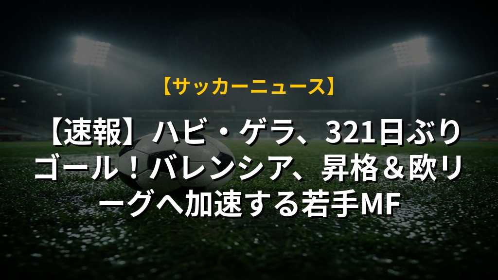 【速報】ハビ・ゲラ、321日ぶりゴール!バレンシア、昇格&欧リーグへ加速する若手MF