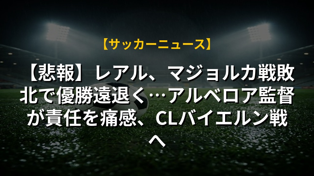 レアル・マドリードがマジョルカに敗れ、リーグ優勝は厳しくなりました。アルベロア監督は、その責任を明確に自身に帰属させ、チームを鼓舞しています。苦しい状況ですが、監督のリーダーシップはチームを立て直す力になるかもしれません。