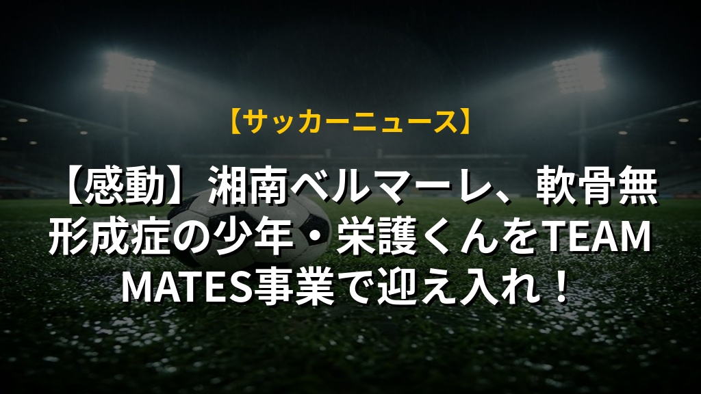 - 湘南ベルマーレは「TEAMMATES事業」で、軟骨無形成症の糸岡栄護くんを迎え入れ、チームの一員となる。