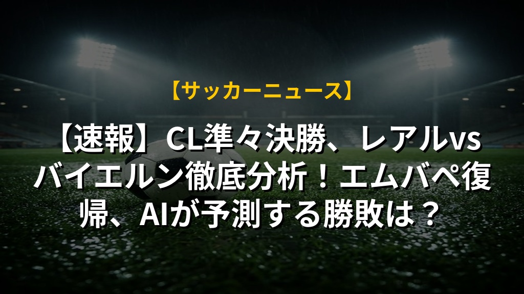 【速報】CL準々決勝、レアルvsバイエルン徹底分析!エムバペ復帰、AIが予測する勝敗は?