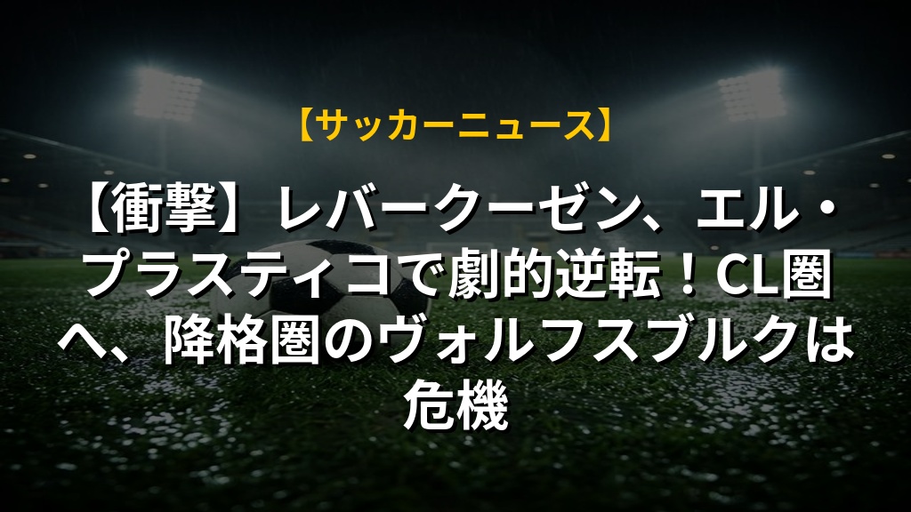 【衝撃】レバークーゼン、エル・プラスティコで劇的逆転!CL圏へ、降格圏のヴォルフスブルクは危機
