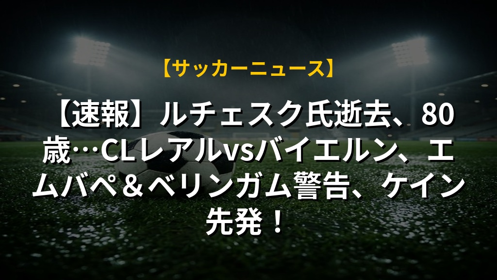 【速報】ルチェスク氏逝去、80歳…CLレアルvsバイエルン、エムバペ&ベリンガム警告、ケイン先発!の注目ポイントまとめ
