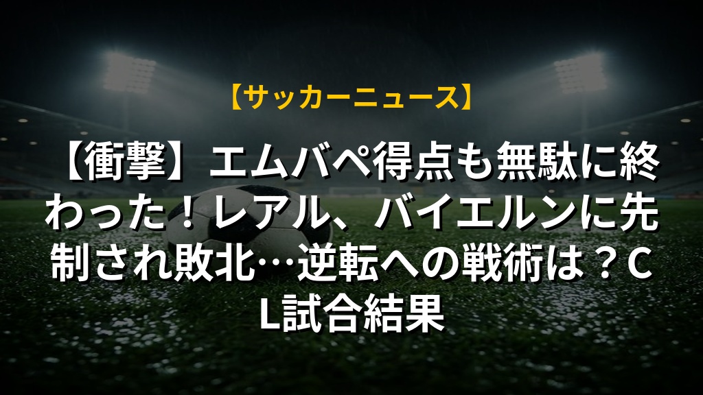 【衝撃】エムバペ得点も無駄に終わった!レアル、バイエルンに先制され敗北…逆転への戦術は?CL試合結果