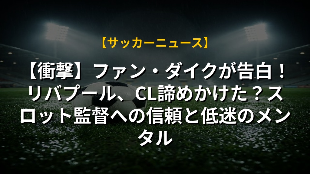 【衝撃】ファン・ダイクが告白!リバプール、CL諦めかけた?スロット監督への信頼と低迷のメンタル