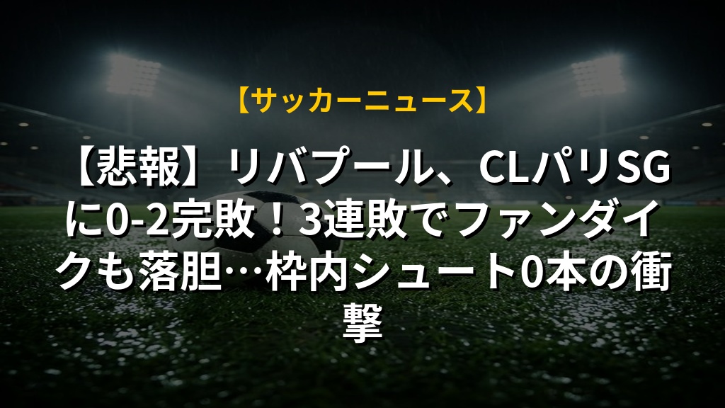 【悲報】リバプール、CLパリSGに0-2完敗!3連敗でファンダイクも落胆…枠内シュート0本の衝撃の注目ポイントまとめ
