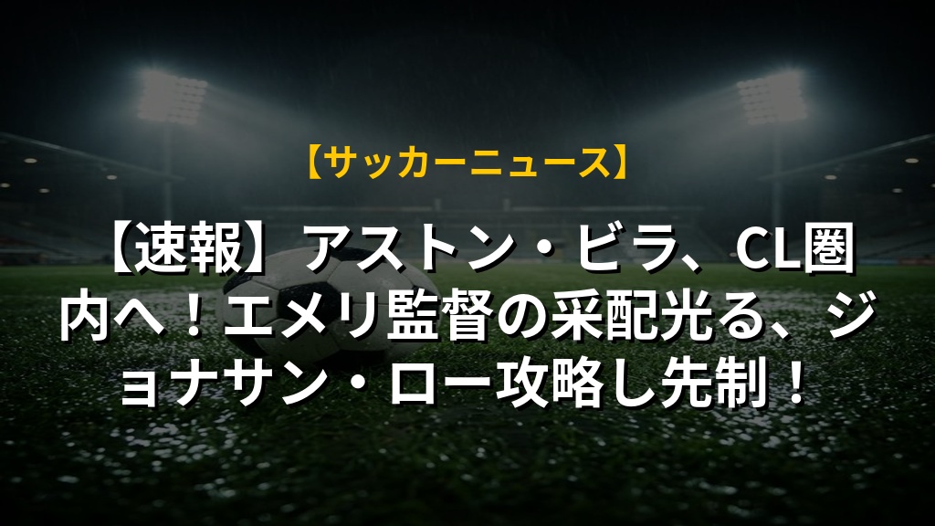 【速報】アストン・ビラ、CL圏内へ!エメリ監督の采配光る、ジョナサン・ロー攻略し先制!