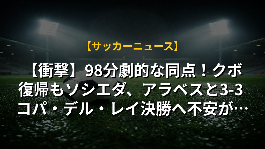 【衝撃】98分劇的な同点!クボ復帰もソシエダ、アラベスと3-3 コパ・デル・レイ決勝へ不安が…の注目ポイントまとめ