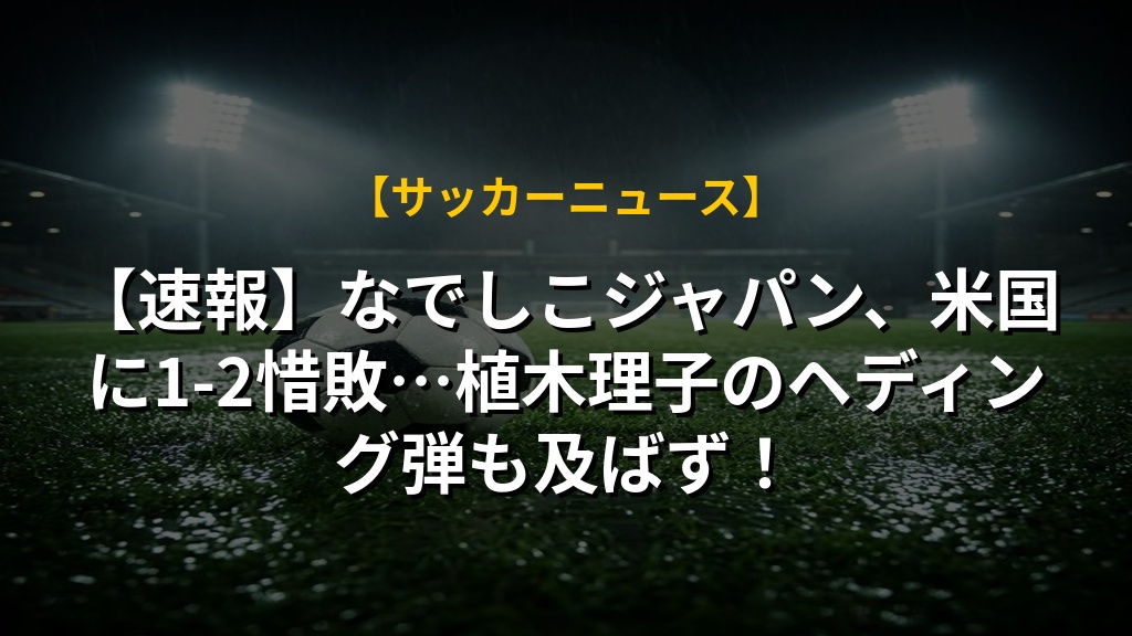 【速報】なでしこジャパン、米国に1-2惜敗…植木理子のヘディング弾も及ばず!