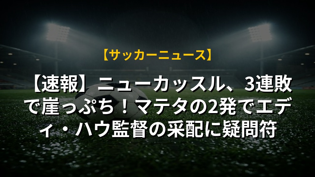 【速報】ニューカッスル、3連敗で崖っぷち!マテタの2発でエディ・ハウ監督の采配に疑問符