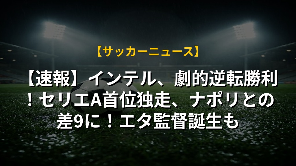 【速報】インテル、劇的逆転勝利!セリエA首位独走、ナポリとの差9に!エタ監督誕生も