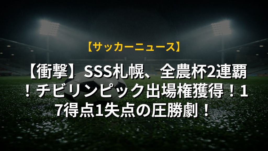 SSS札幌サッカースクールの全農杯優勝は、単なる大会連覇以上の意味を持つでしょう。