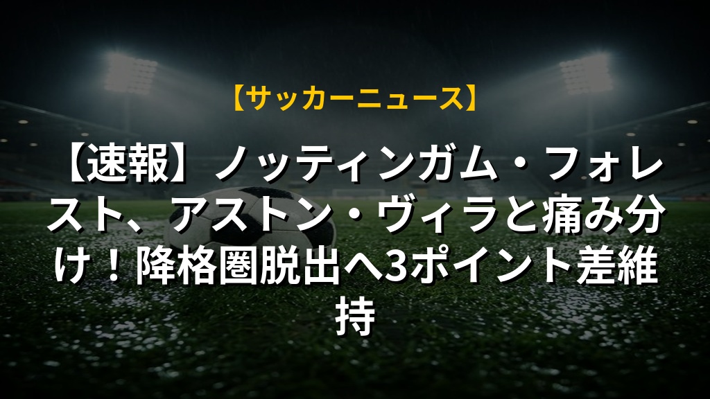ノッティンガム・フォレストは、アストン・ヴィラとのホーム戦で1-1の引き分けに持ち込み、降格脱出へ貴重な1ポイントを獲得しました。ヴィラは決定機を数多く逃し、ロジャース選手の課題も浮き彫りになりましたが、フォレストのセルス選手の好セーブも光りました。