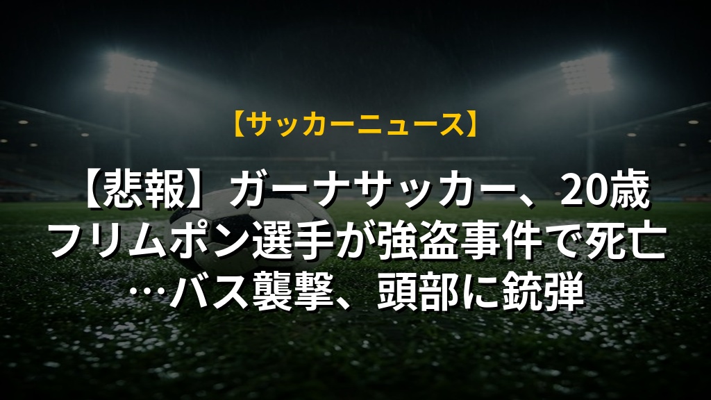 【悲報】ガーナサッカー、20歳フリムポン選手が強盗事件で死亡…バス襲撃、頭部に銃弾