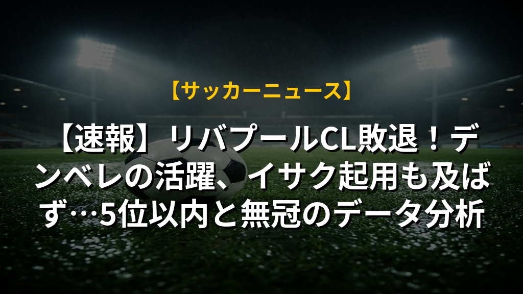 【速報】リバプールCL敗退!デンベレの活躍、イサク起用も及ばず…5位以内と無冠のデータ分析