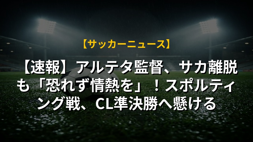 【速報】アルテタ監督、サカ離脱も「恐れず情熱を」!スポルティング戦、CL準決勝へ懸ける