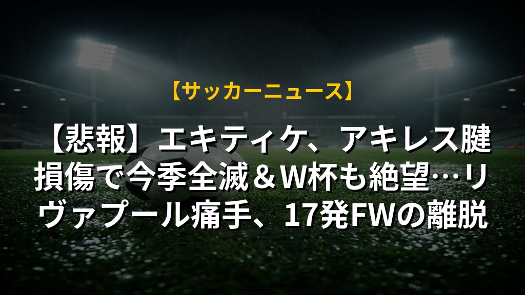 リヴァプールのエキティケ選手が、PSG戦での怪我により今シーズン残り、そしてワールドカップ出場が絶望となりました。チームトップスコアラーの離脱は、チャンピオンズリーグ出場権争いにおいて大きな痛手です。