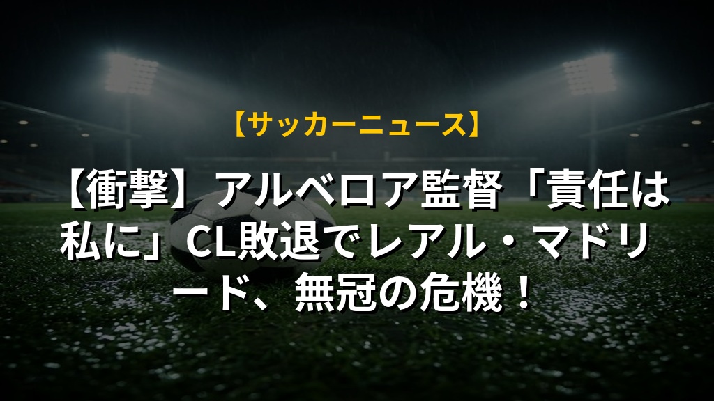 レアル・マドリードがチャンピオンズリーグで敗退し、今シーズンは無冠に終わる可能性が高まっています。アルベロア監督は責任を痛感しつつもクラブの決定を尊重する姿勢を見せています。特にカマヴィンガ選手の退場が痛く、試合の流れを大きく変えてしまったのは残念でした。一方で、アルダ・ギュレル選手の活躍は明るい兆しです。今後は若手育成と戦術の強化が不可欠で、クラブ全体で課題解決に取り組む必要がありそうです。ファンとしては、来シーズンこそは再び輝きを取り戻してほしいと願うばかりです。