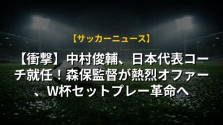 サッカー日本代表の新コーチに、元日本代表MFの中村俊輔氏が就任することが決定しました。