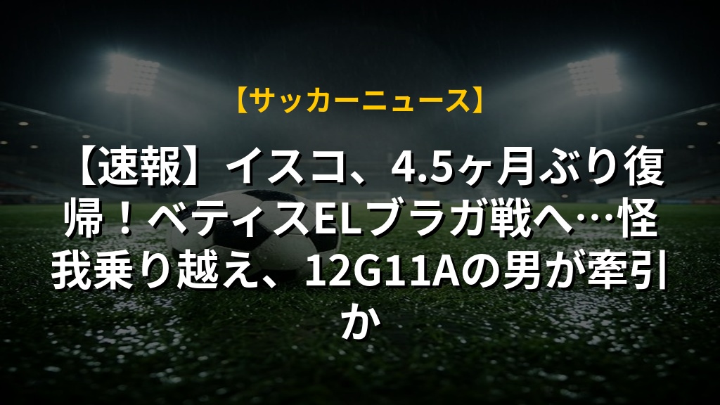 【速報】イスコ、4.5ヶ月ぶり復帰!ベティスELブラガ戦へ…怪我乗り越え、12G11Aの男が牽引か