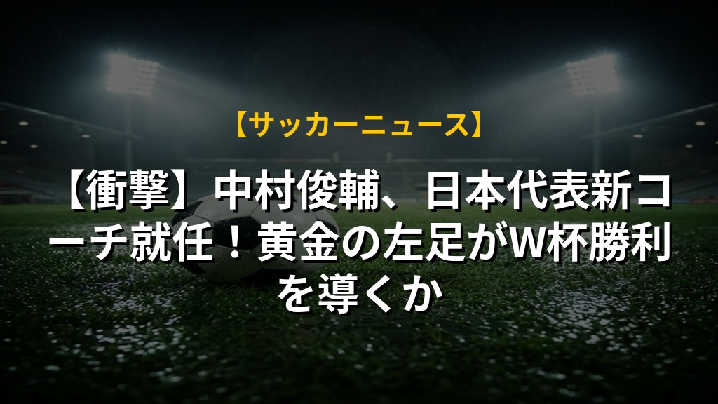 【衝撃】中村俊輔、日本代表新コーチ就任!黄金の左足がW杯勝利を導くか